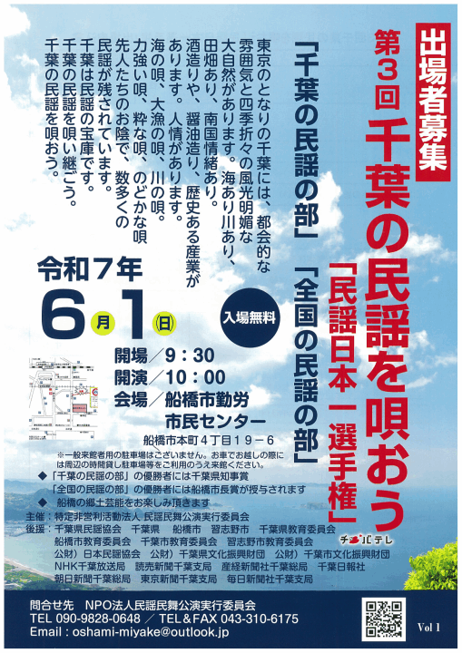 ◇第4回千葉の民謡を唄おう「民謡日本一選手権」令和8年6月7日㈰ 船橋市勤労市民センター【出場者大募集】